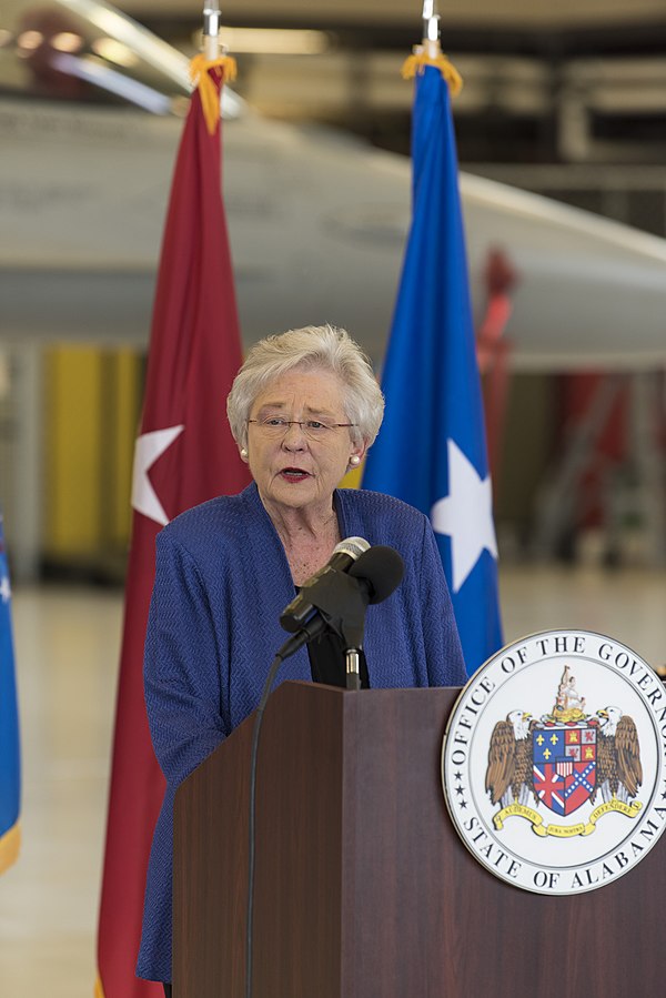 Alabama Gov. Kay Ivey in 2017. Image via Wikimedia Commons, originally from Flickr/user:187th Fighter Wing, Alabama Air National Guard at https://flickr.com/photos/147661216@N05/38474971565. Public domain.