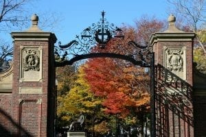 Gates to Harvard University. Image via Flickr/user:sackton. (CCA-BY-2.0).