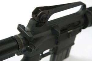 A close-up image of an AR-15 semiautomatic rifle. Image via Wikimedia Commons/Steve Rainwater. (CCA-BY-2.0)